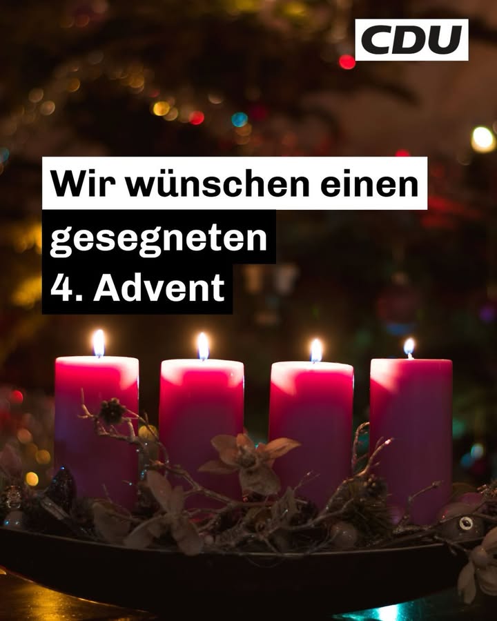 mehrDer 4. Advent lädt dazu ein, innezuhalten. 🕯️🕯️🕯️🕯️Zeit für Ruhe, für Gemeinschaft und für das, was wirklich zählt.Wir wünschen allen Berlinerinnen und Berlinern einen friedlichen 4. Advent und besinnliche Stunden im Kreis der Familie und mit Freunden.