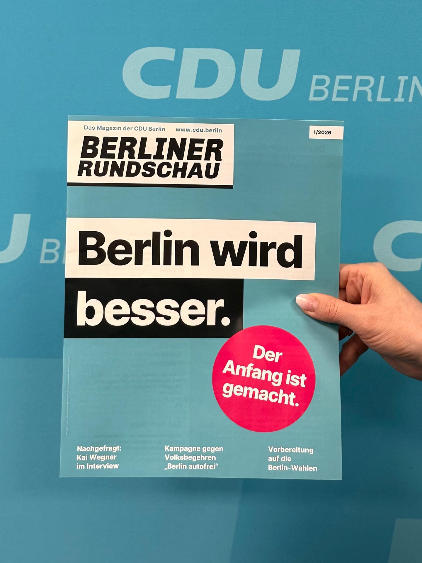 mehrAls Weltstadt braucht Berlin Mobilität, die funktioniert. Das Volksbegehren "Berlin autofrei" will den privaten Autoverkehr innerhalb des S-Bahn-Rings fast vollständig verbieten. Wir sagen klar: Auto verbieten verboten! Ein pauschales Autoverbot trifft die Falschen: Handwerker, Familien, Pendler und Menschen, die auf ihr Auto angewiesen sind. Warum wir NEIN zu "Berlin autofrei" sagen: 👉 Wahlfreiheit erhalten: Jeder soll selbst entscheiden können, welches Verkehrsmittel er nutzt. 👉 Wirtschaft schützen: Berlin braucht Lieferwege und Erreichbarkeit für unsere Unternehmen. 👉 Kollaps verhindern: Unser ÖPNV ist bereits jetzt an der Belastungsgrenze, ein plötzlicher Umstieg von Hunderttausenden ist aktuell nicht machbar. 👉 Gegen die Spaltung: Wir wollen ein Miteinander aller Verkehrsteilnehmer, kein Gegeneinander. Wir setzen auf intelligente Verkehrslösungen, einen starken ÖPNV und den Ausbau der Radwege, aber ohne ideologische Verbotspolitik.