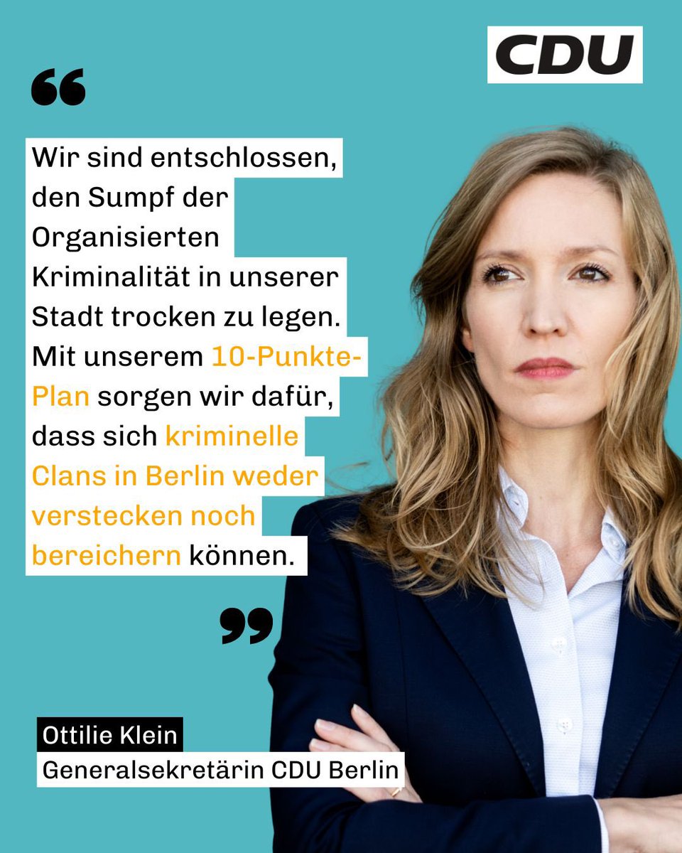 Unser 10-Punkte-Plan gegen Organisierte Kriminalität 🚨Berlin muss sicherer werden und dafür braucht es eine klare Linie gegen kriminelle Netzwerke. Wir gehen dorthin, wo Strukturen entstehen: zu Geldflüssen, Treffpunkten und illegalen Geschäftsmodellen.👮♂️ Mehr Razzien & stärkere VerbundeinsätzePolizei, Justiz, Ordnungsämter und Bezirke arbeiten enger zusammen, damit kriminelle Strukturen nicht nur sichtbar werden, sondern verschwinden.? Moderne Technik & KIMit künstlicher Intelligenz erkennen wir verdächtige Finanzströme schneller und decken komplexe Netzwerke gezielt auf.💸 Illegale Geschäfte stoppenOb Mietwagenverleihe, Spielhallen oder Bargeld-Geschäfte: Wir schließen kriminelle Einnahmequellen und nehmen Hintermänner ins Visier.Unsere Generalsekretärin Ottilie Klein macht unmissverständlich klar:"Wer Kriminalität wirksam bekämpfen will, muss den Kriminellen ihre finanzielle Grundlage entziehen. Mit stärkeren Staatsanwaltschaften, einer schlagkräftigen Gewerbeüberwachung und moderner Technologie schaffen wir genau das." Unser Ziel ist klar: Ein Berlin, in dem Recht und Gesetz gelten, überall und jederzeit. Organisierte Kriminalität hat in dieser Stadt keinen Platz.📎 Den vollständigen Beschluss findet ihr über den Link im Kommentar.