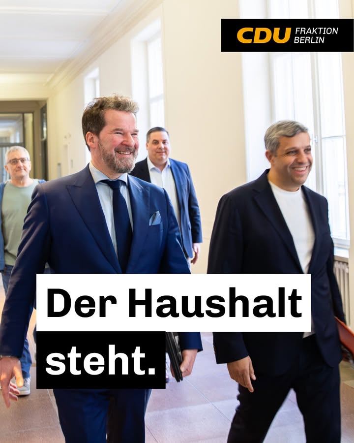Der Haushalt steht. 💻 Wir modernisieren die Verwaltung und treiben die Digitalisierung voran. 👮♂️ Wir stärken Sicherheit, Katastrophenschutz und Ordnung im öffentlichen Raum. ? Wir sorgen für mehr Sauberkeit und attraktivere Stadtplätze. 🏊♂️ Wir machen Sportstätten fit, sichern wichtige Kultureinrichtungen und verbessern die Arbeitsbedingungen an Musikschulen. ⚖️ Wir stärken die Justiz im Kampf gegen Kriminalität und verbessern die Gesundheitsversorgung. 🎒 Und wir investieren spürbar in Bildung, Jugend und Familie. Für ein Berlin besseres Berlin.