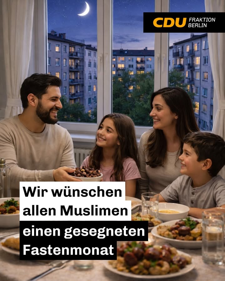 mehrMit der Sichtung des Mondes beginnt heute Abend der Ramadan.Für viele Musliminnen und Muslime ist diese Nacht ein besonderer Moment: Mit Gebeten wird der Fastenmonat willkommen geheißen.Wir wünschen allen Musliminnen und Muslimen in Berlin einen gesegneten Ramadan. Möge dieser Monat das Miteinander und den Zusammenhalt in unserer Stadt wachsen lassen. 🌙
