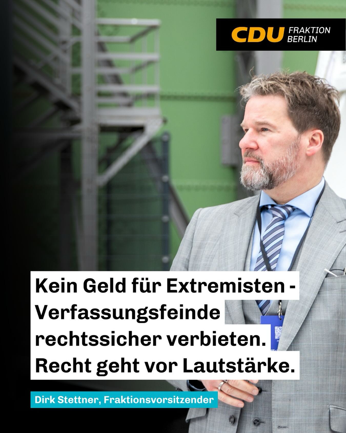 mehr➡️Link zum Antrag in der Bio. "Kein Geld für Extremisten - Verfassungsfeinde rechtssicher verbieten. Die freiheitlich-demokratische Grundordnung ist das Fundament unser staatlichen Ordnung und Rechtstaatlichkeit. Sie garantiert Freiheit, schützt Minderheiten und setzt der Macht des Staates klare Grenzen. Deshalb verteidigen wir sie und genau deshalb greifen Extremisten sie an. Deutschland hat aus seiner Geschichte gelernt. Das Scheitern der Weimarer Republik und der Aufstieg des Nationalsozialismus haben gezeigt, wie verletzlich eine Demokratie sein kann. Gleichzeitig zieht das Grundgesetz daraus eine zweite, ebenso wichtige Lehre: Staatliche Macht braucht klare Grenzen. Deshalb sind die Hürden für ein Parteienverbot in Deutschland bewusst sehr hoch. Ein Verbot darf niemals Ergebnis politischer Mehrheiten oder tagespolitischer Stimmung sein. Und genau hier liegt der Kern dieses Antrags: Nicht Parlamente entscheiden über Verbote, sondern unabhängige Institutionen. So regelt es das Grundgesetz. Der Verfassungsschutz sammelt Fakten. Gerichte wägen diese ab. Und allein das Bundesverfassungsgericht entscheidet, ob eine Partei oder Organisation die freiheitlich-demokratische Grundordnung bekämpft. Das ist kein Zufall, sondern das ist ein Schutzmechanismus gegen Machtmissbrauch und Willkür. Dieser Antrag richtet sich gegen alle Verfassungsfeinde ? unabhängig davon, ob sie rechts-, linksextrem oder islamistisch motiviert sind. Maßstab ist allein, ob jemand darauf aus ist, unsere Verfassung zu untergraben oder abzuschaffen. Klar ist: Das schärfste Schwert der Demokratie darf nur ziehen, wer rechtlich sicher steht. Gründlichkeit geht vor Schnelligkeit. Recht geht vor Lautstärke. Gerade wir Christdemokraten stehen fest hinter dem Grundgesetz. Die freiheitlich-demokratische Grundordnung ist für uns kein taktisches Mittel, sondern Verpflichtung. Wer sie angreift, greift das Fundament unseres Staates an. Und wer sie verteidigt, tut das rechtsstaatlich, mit Maß und aus Respekt vor unseren Institutionen. So schützen wir unsere Demokratie." Dirk Stettner, Vorsitzender der CDU-Fraktion Berlin