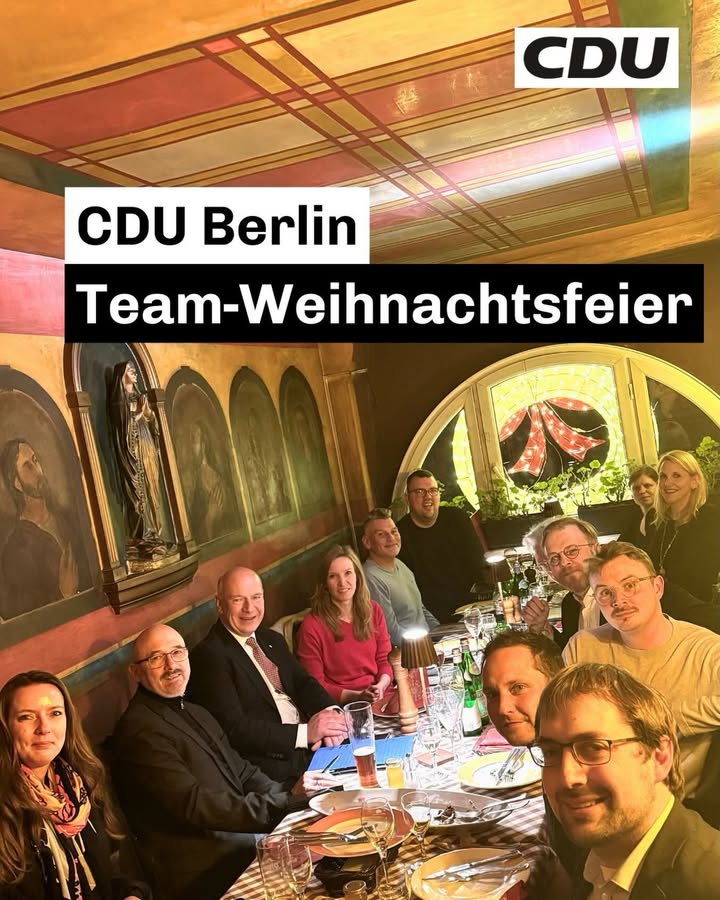 mehrEin Abend voller Gespräche, Lachen und echter Gemeinschaft. 🎄❤️Unsere Weihnachtsfeier der Landesgeschäftsstelle unserer @cduberlin hat gezeigt, was uns stark macht: Teamzusammenhalt, Einsatz und der gemeinsame Wille, Berlin voranzubringen.Wir haben zusammen das Jahr ausklingen lassen, bevor wir Weihnachten mit unseren Familien verbringen. Danke an alle Kolleginnen und Kollegen für euren täglichen Einsatz, eure Verlässlichkeit und euer Engagement. Ihr seid mit Herz, Zeit und Ideen dabei, für unser Berlin. 💪🏻