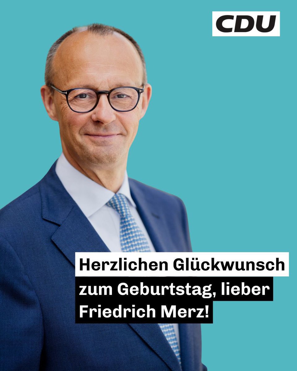 Herzlichen Glückwunsch zum 70. Geburtstag, lieber Friedrich Merz! 🎉Vielen Dank für Einsatz, Klarheit und Haltung für Deutschland. Der Kurs für Stabilität, wirtschaftliche Vernunft und eine moderne, selbstbewusste CDU prägt politische Debatten weit über die Parteigrenzen hinaus. So geht?s weiter! Alles Gute zum Geburtstag und weiterhin Kraft und Erfolg für die kommenden Aufgaben! 💪🏻